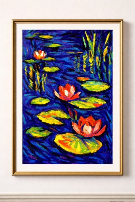 #Pond Series is an expressionist collection of five water‑lily pieces created on the iPad using Procreate. The series brings together bold color contrasts, textured brushstrokes, and a gestural, emotional style that carries the spirit of Expressionism into a modern digital medium.
